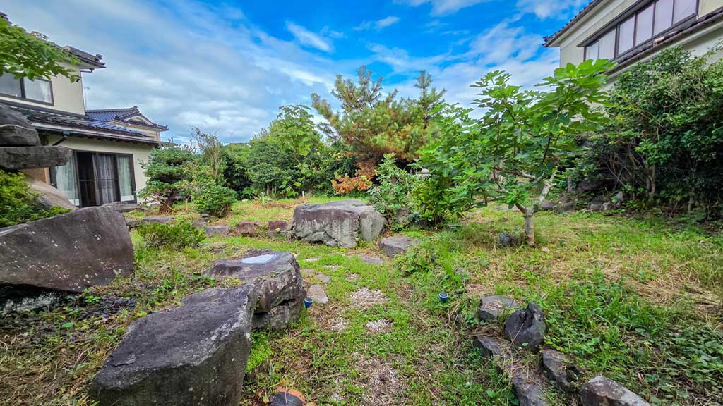 個人的には間口側の庭を少しつぶしてもう少し駐車スペースを取りたいところではありますが、庭いじりが好きな方や石をふんだんに使った風情を好まれる方はこのままの方が良いかもしれません。