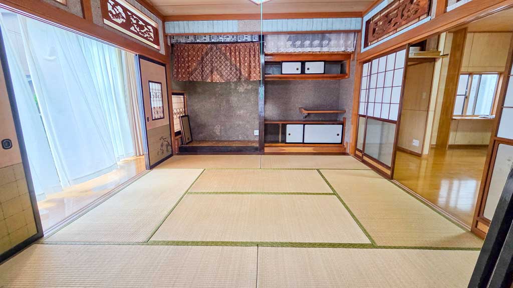 畳の傷み・へたりはありますが、きれいに使用していただいているためこのままでも使用できそうです(傾斜感はあります)。