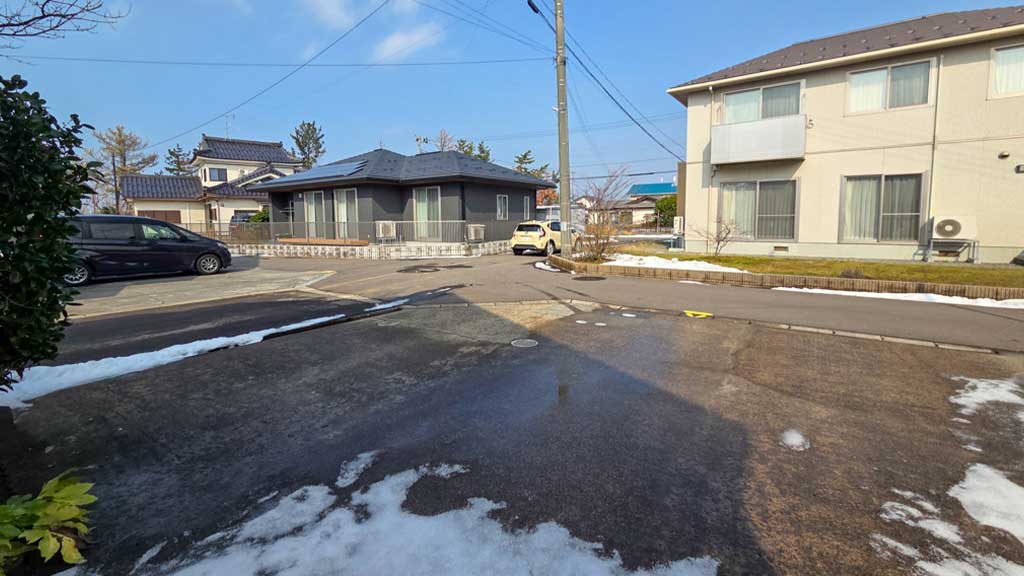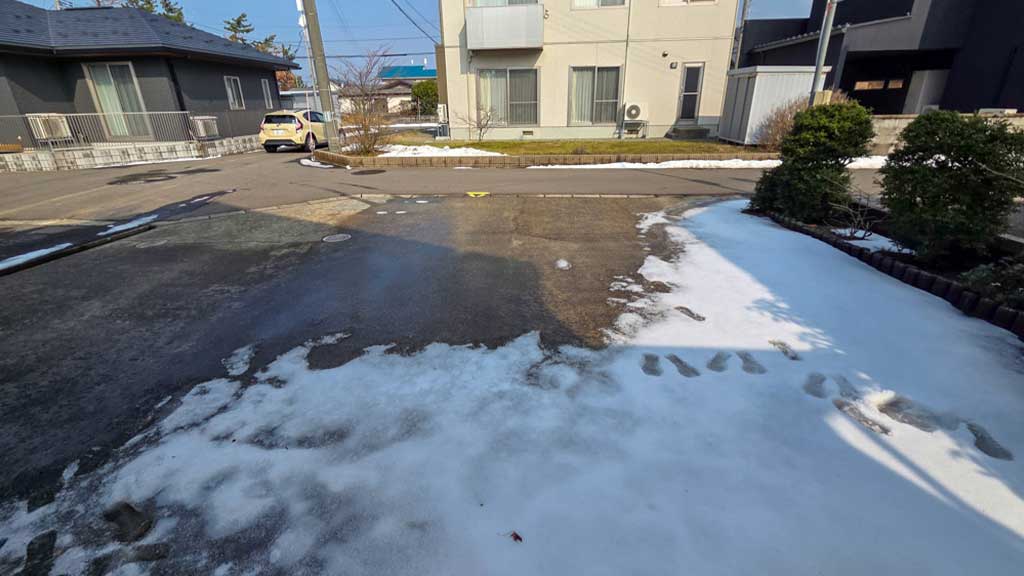 西側の側溝にはふたがないので、ふたをすればもっと駐車しやすくなると思います。