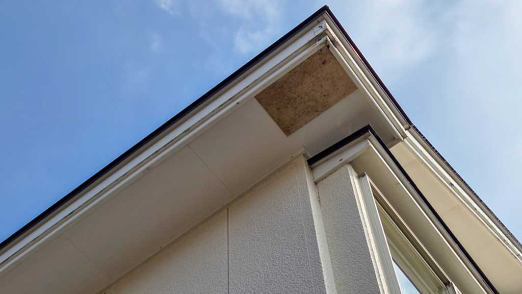 外壁については、現在のところ修繕不要と考えていますが、南西角の軒に修繕必要箇所があります。